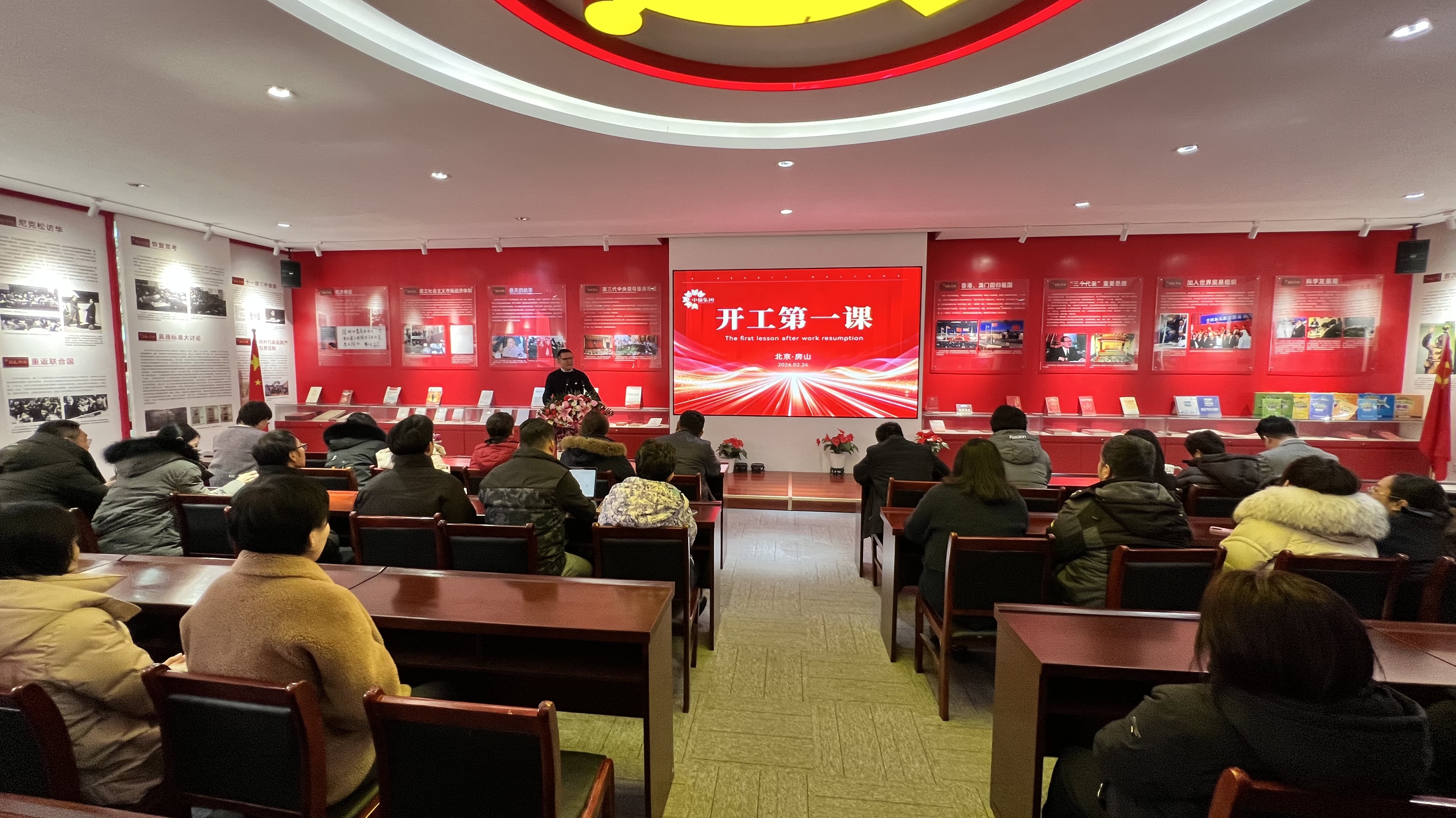 2026丙午马年新春首个工作日,中郁教育科技(集团)有限公司全体成员齐聚集团总部国史影像基地,召开了一场意义非凡的“开工第一课”全体会议,吹响了新一年奋斗的号角。此次会议不仅是思想的统一与动员,更是一次深度的行业洞察与战略校准,旨在开阔视野、提升格局、凝聚共识,激励全体员工以饱满的热情与坚定的信心,携手开启新征程。