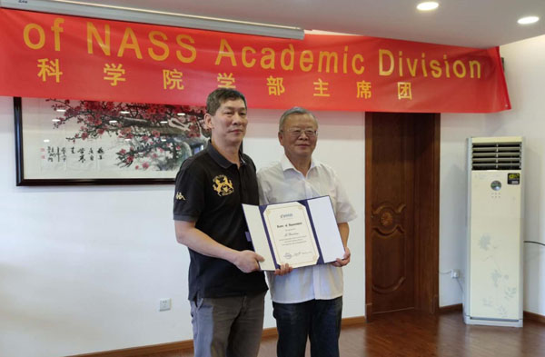 2020年9月18日上午,中国·北京,在NASS北京联络处,由NASS理事会理事长Rayman先生为李云彪院士颁发学部主席团主任委员聘书。