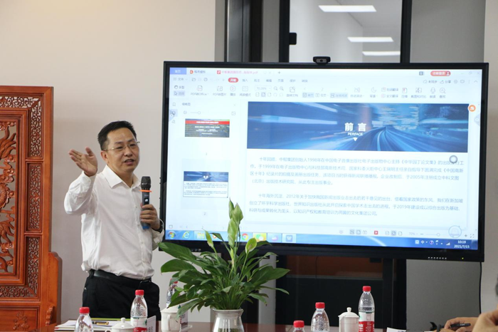 调研会上,中郁集团分别从20年事业发展及业务情况等方面向河北国控领导展开详细和深入的汇报。集团副总经理李清对企业基本情况及学术出版、国际科研及成果转化、数字化平台建设、知识产权、教育培训“五位一体”的文创产业链等方面进行了整体概述。国际事业部总经理贺秀华汇报了国际出版服务业务的具体情况。总经理李晓帆介绍了中郁集团数字化及3D技术成果及科研课题的业务情况。副总经理郄江华从互联网技术领域的探索方面进行了解读和汇报。中郁集团董事长王郁涛博士总结性发言后,与会双方展开了对文化创意产业未来合作与发展问题的热烈交流和探讨。